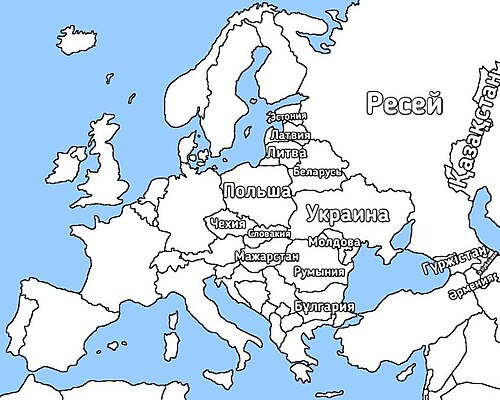 толығымен Шығыс Еуропаға жататын елдер (территориясының көп бөлігі Азияда болғандықтан Ресейден басқа)