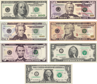 Барлық АҚШ федералдық банкноттары, 1861 жылдан бастап шыға бастаған, бүгінге дейін заңды түрде төлем қызметін атқарады. 1971 жылдың 15 тамызынан бастан доллардың алтын қормен қамтамасыз етілуі тоқтатылды.